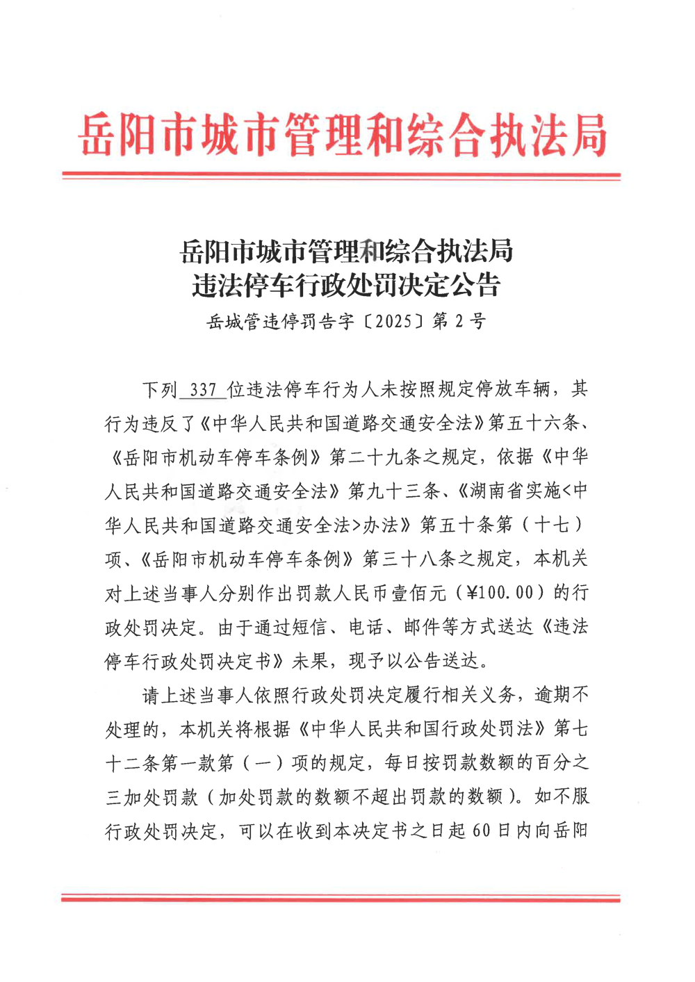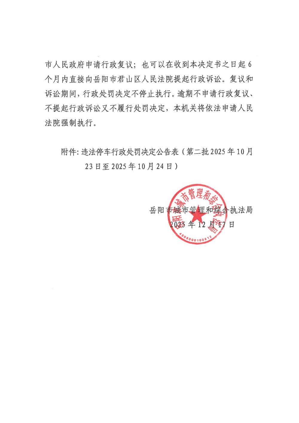 违法停车行政处罚决定公告表(第二批2025年10月23日至2025年10月24日).xlsx
