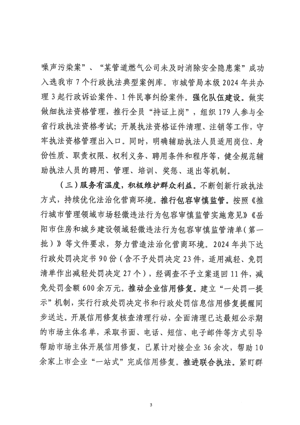 岳阳市城市管理和综合执法局2024年度行政执法工作情况报告