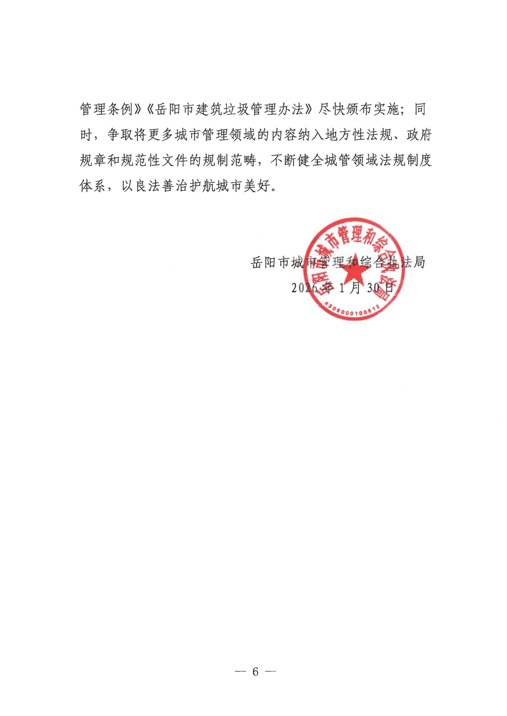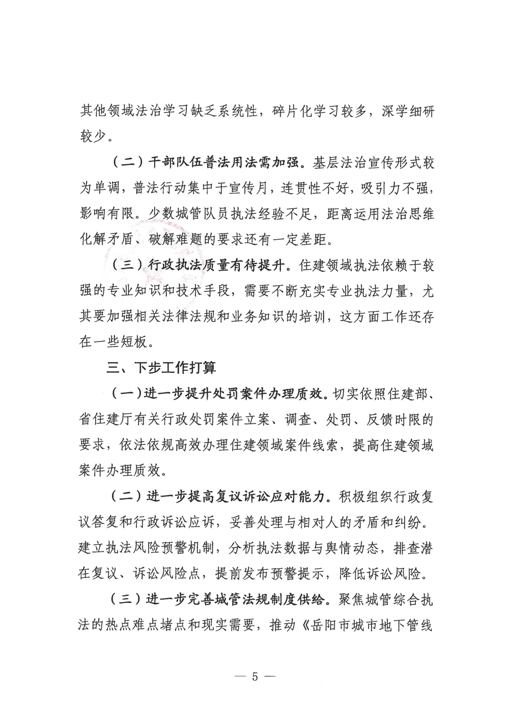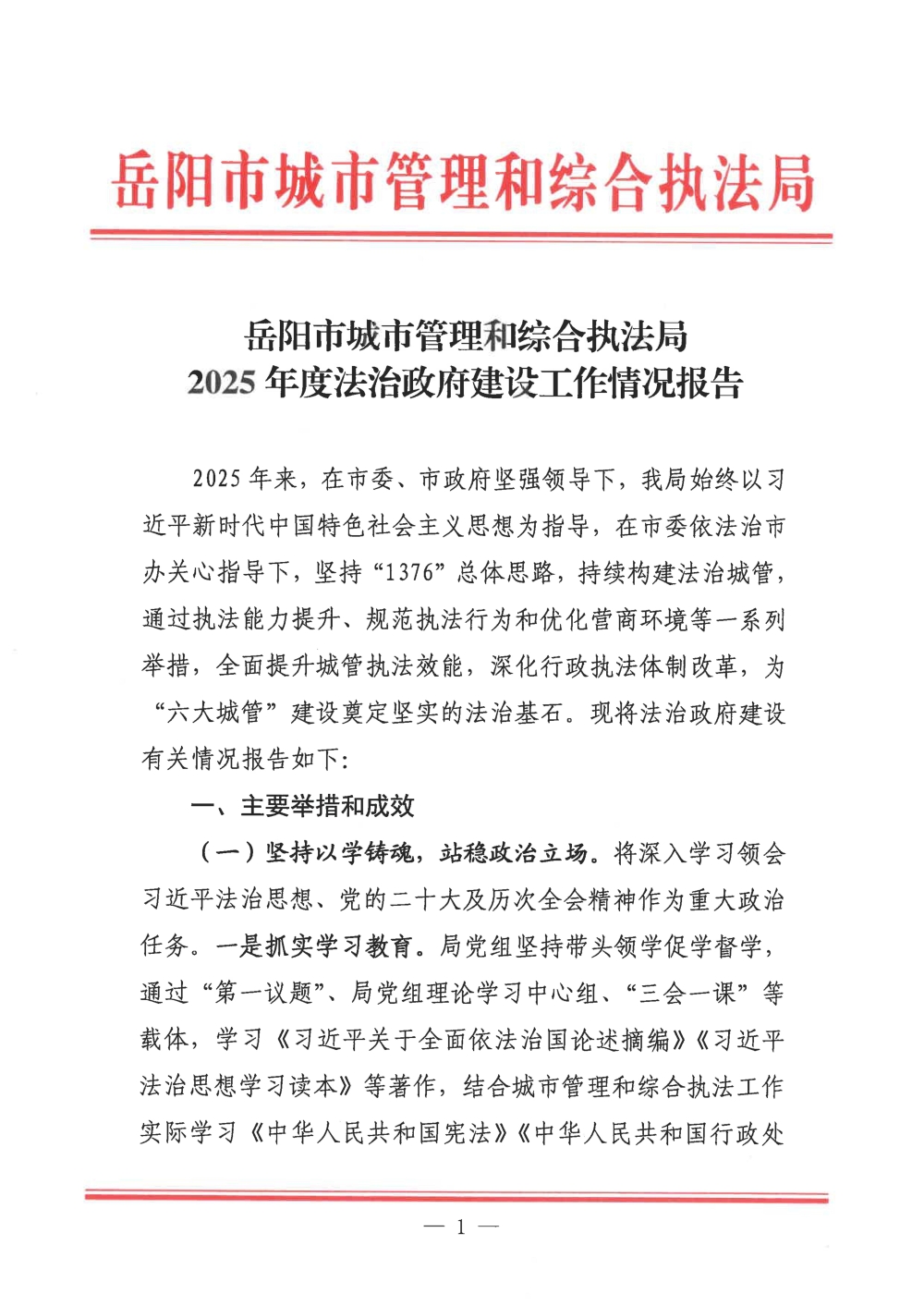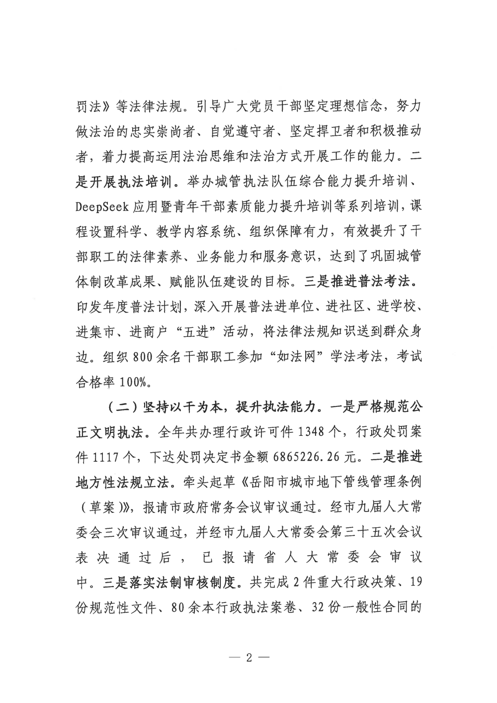 2025年度岳阳市城市管理和综合执法局法治政府建设工作情况报告
