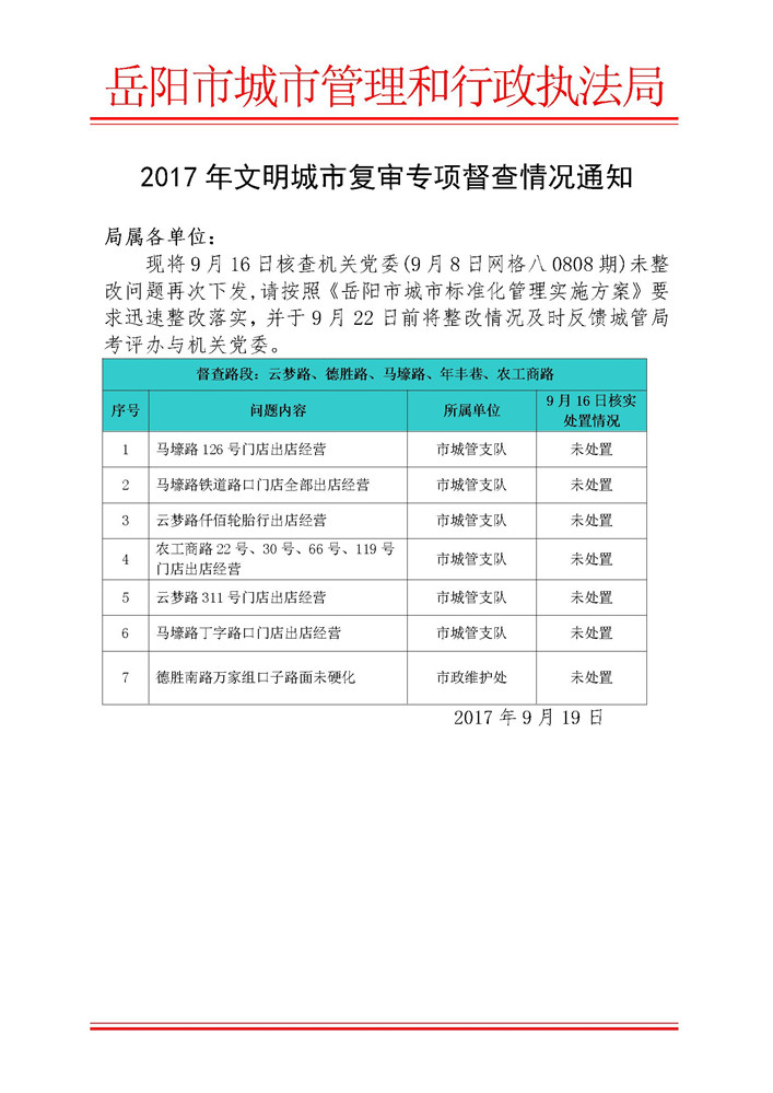 2017年9月19日文明城市复查专项督查--网格八