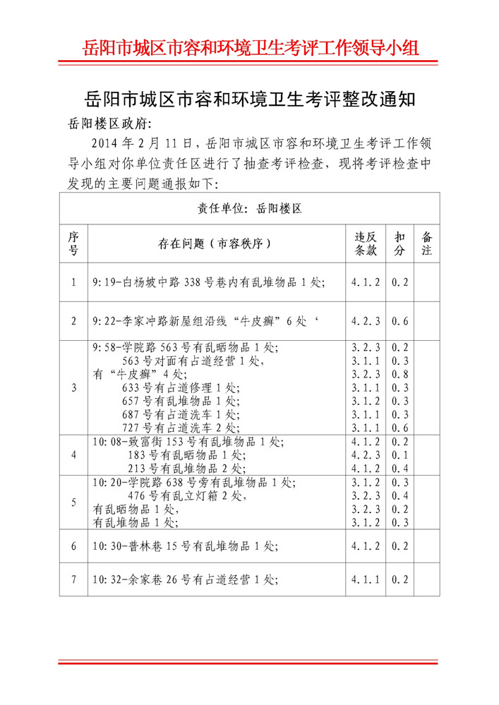 2014年2月10日五区抽查整改通知
