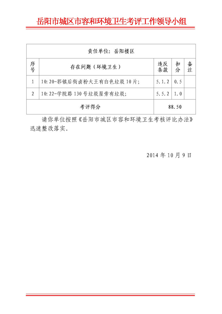2014年10月8日五区抽查整改通知