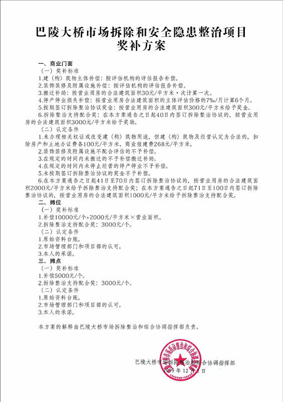 习近平总书记指出,“人命关天,发展决不能以牺牲人的生命为代价。这必须作为一条不可逾越的红线。”巴陵大桥市场重大安全隐患和广大人民群众生命财产安全始终牵动着市委、市政府的心。今年6月19日,市政府召开消防工作专题会议,决定启动巴陵大桥市场拆除和安全隐患整治工作。之后,市政府多次调度推进。11月14日,市政府召开第34次常务会议,对巴陵大桥市场拆除和安全隐患整治工作进行了重点部署,提出了明确要求。为此,市政府成立了由常务副市长挂帅、各部门共同参与的领导小组,并成立了拆除整治和综合协调指挥部。