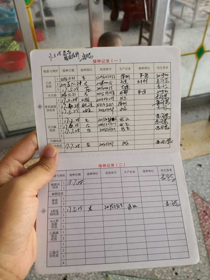 平江政府、卫计委: 我儿(家住平江浯口)2017年接种了武汉生物制品研究所有限公司(以下简称武汉生物)的百白破疫苗,(见附件),武汉生物,现已查明该企业生产的201607050-2批次疫苗效价不合格!这是一家问题疫苗企业,我们已经对其深感不信任!我儿接种的疫苗是否也是假疫苗,请政府、卫计委给我们一个交代!我儿是否需要补种?该疫苗由谁来监管,是否一律推诿给国家药品局?当前政府采购流程和监管是否有力? 附件1:接种记录f.jpg |