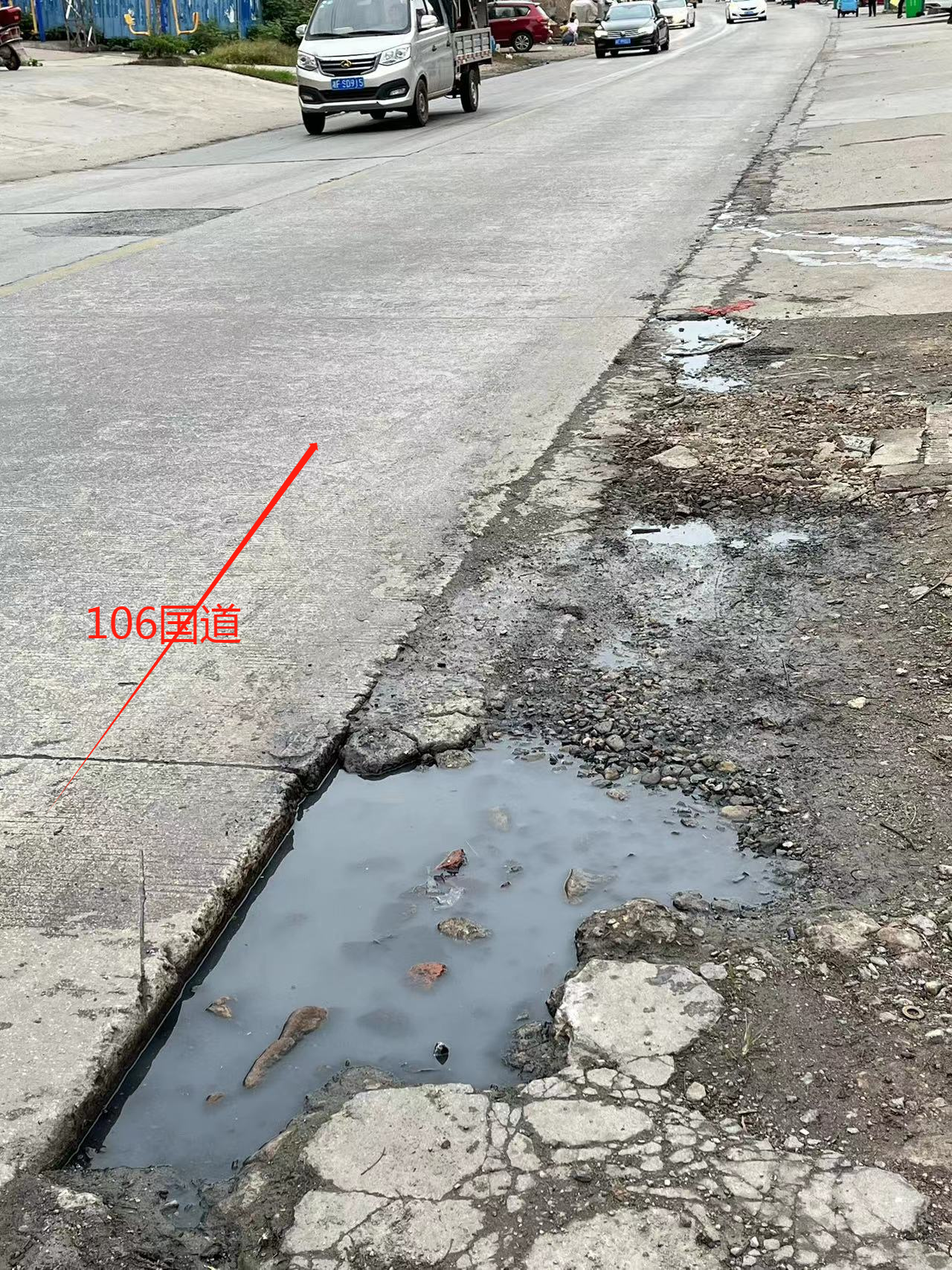 湖南省平江县梅仙镇团山村,村委会对面,炫彩文具店前面106国道路基损坏!原路基完好,后水利局埋自来水管,填补好后,后来慢慢被车压坏! 附件1:b936622661eed247205ef4e85443c1a.png 附件2:a89b29e55262892eb1b934d38790b4f.png |