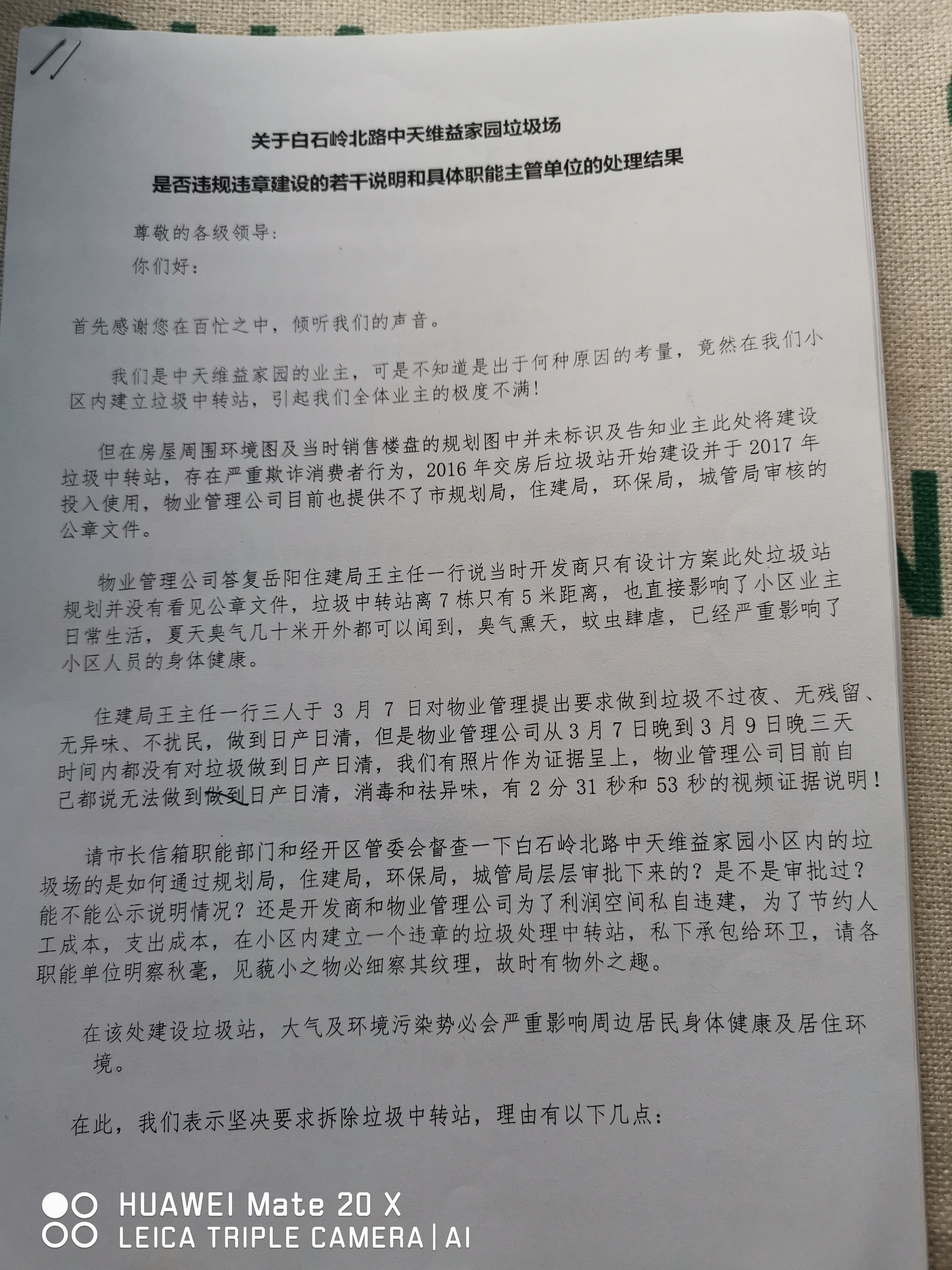 关于白石岭中天维益垃圾场问题我们已经向市长信箱投诉举报四次了!
