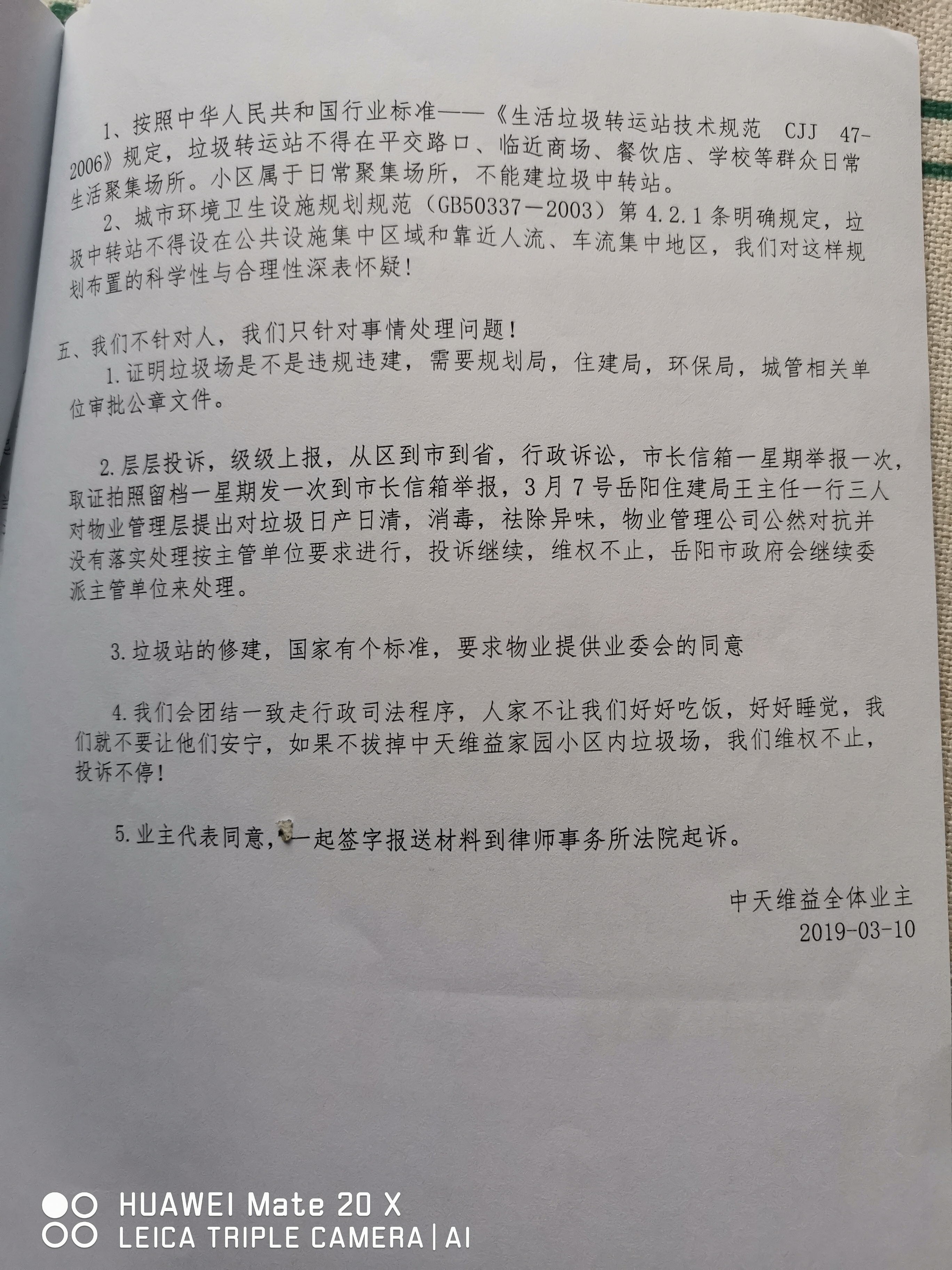 3.我们作为小区业主的一员对在小区内建设垃圾场,深恶痛绝,我们集体102人签名要拔掉此垃圾场,对我们的日常生活影响太大了。