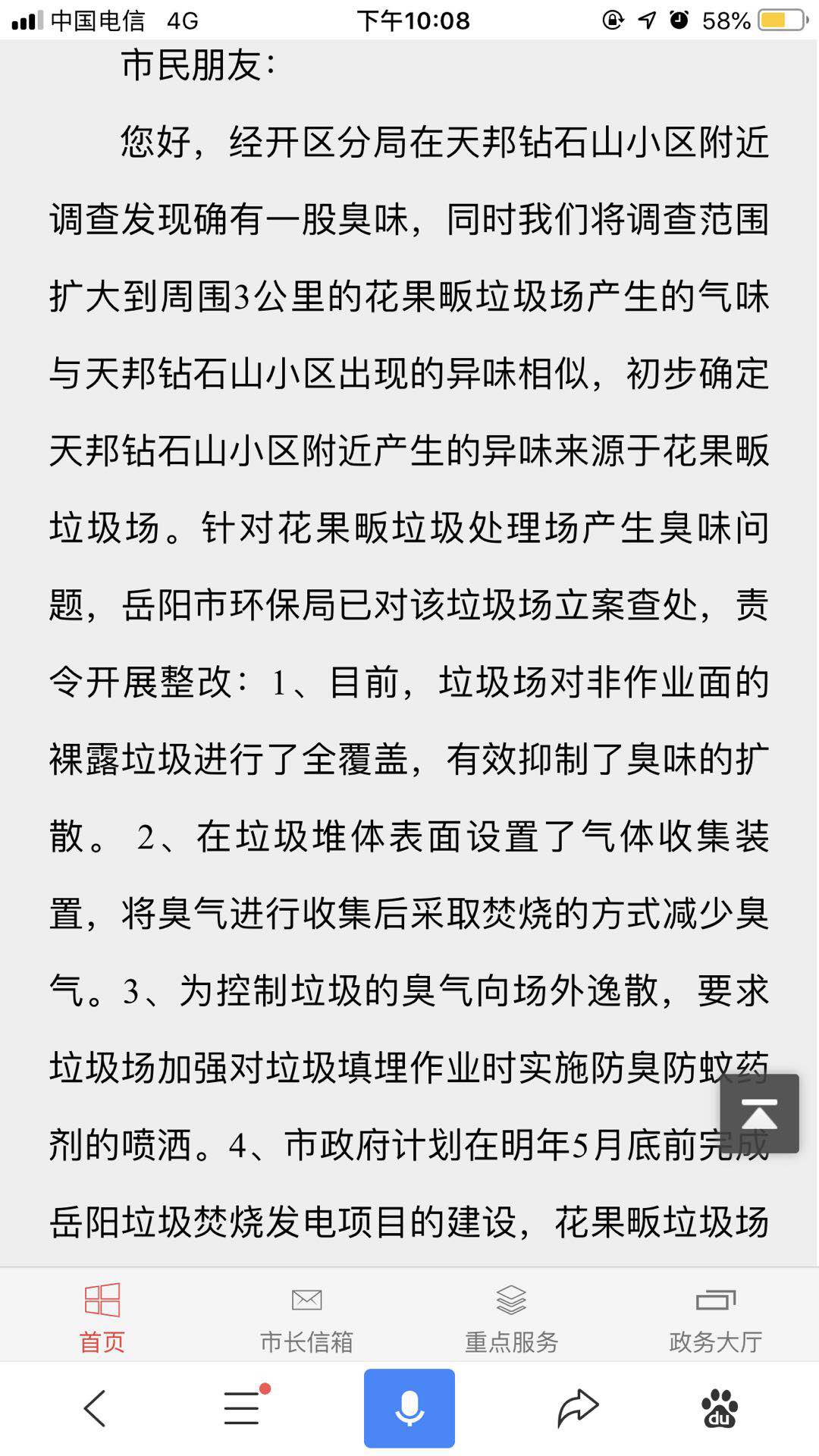 本人居住的地方位于岳阳市经济开发区天邦钻石山小区,校区目前为止已经有几千人人居住,临近小区也有全城热恋、唯益家园、白石岭居民点、白石岭小学、王家河小学。本小区现在已经全部住满,并且有大量的小孩和老人,不少老人和小孩在“臭味”的影响下出现了气管炎、肺部感染,严重的危害到了居民的健康。这里的居民一直都生活在“臭味”的阴影下,这臭味的出现已不是一天两天,而是长年累月,开始是全天都有,在市环保局的打击下。变成了政府机关下班之后才有,每到吃完晚饭,开始散步的时候。熏人的“臭味”就出来了。  而且“臭味”的出现异常的有规律,节假日没有,周六周天没有。只有在下班之后,开始出现到晚上到达高峰。“臭味”伴有严重的药味, 空气质量严重污染。之前市环保部门调查认为是花果畈的垃圾场的味道,市环保部门回复:今年5月份会彻底解决这一问题。但是五月已到,臭味的治理没有见到成效,反而变本加厉。小区业主讨论之后一致的认为这种“臭味”应该是旁边的制药厂,或者是化工厂的违规排放。