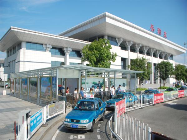 现在使用的出租车候车棚系过渡性候客通道。市政府拟在高铁站附近规划建设岳阳东客运枢纽站,目前正在进行调研及相关论证工作。
