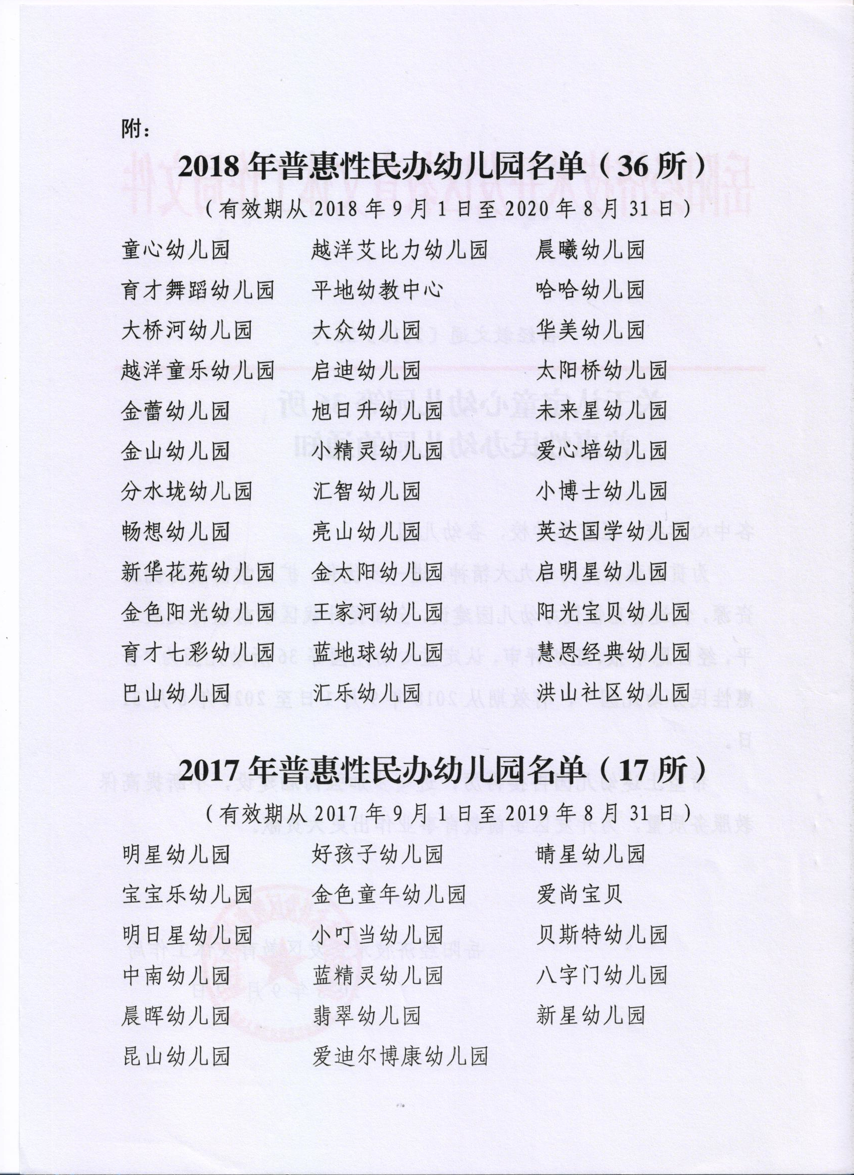 | 回复内容: | 网友您好: 信件已收悉,经开区教文局幼教办查阅了有关资料,找到了2018年普惠性民办幼儿园名单,名单如下图: 2.根据中央有关政策,从2020年起普惠性幼儿园,享受入园儿童人均500元每年的补助;中央、省级财政奖补2万元每年/每园。对于当事人反映的幼儿园涨价问题,区有关部门正加紧核查,结果出来后将及时告知当事人。 |