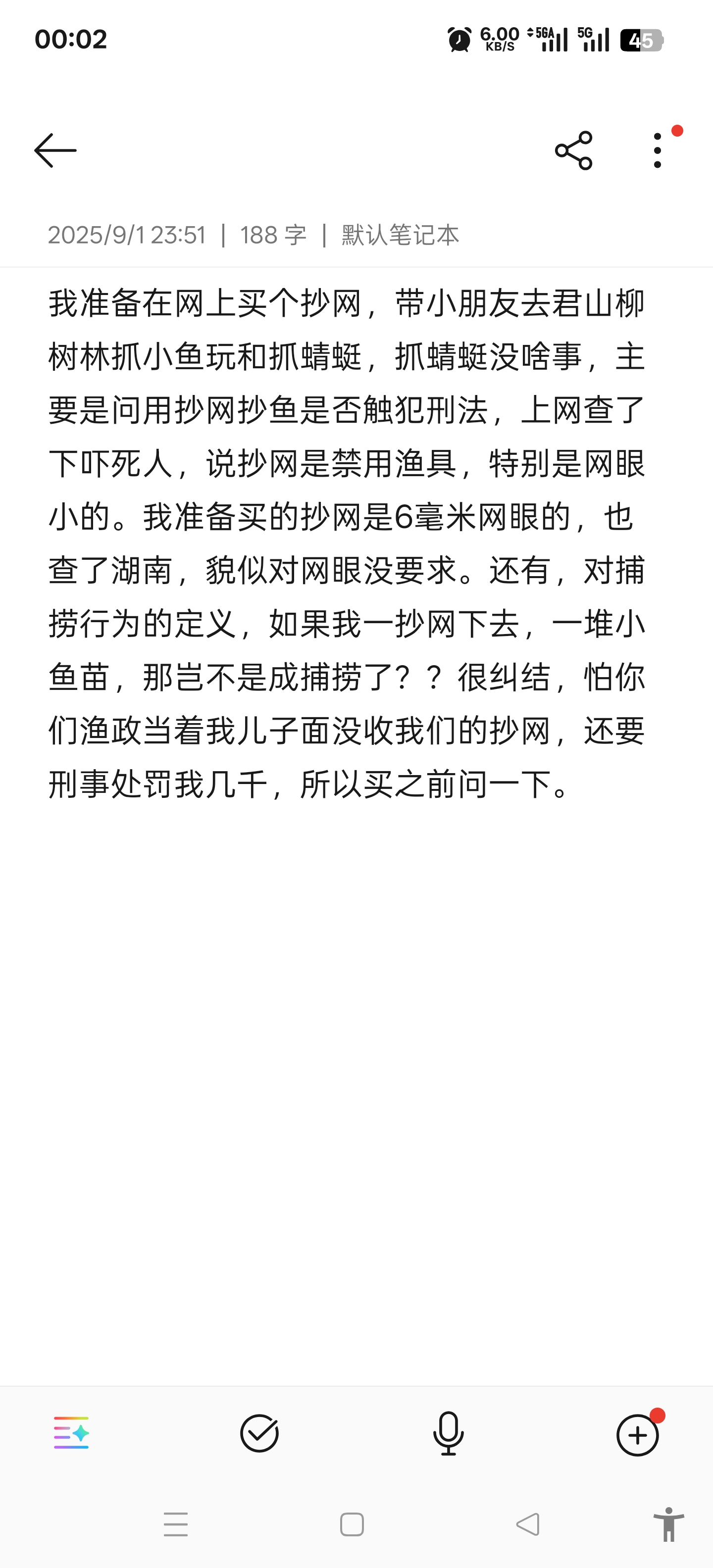 | 回复内容: | 尊敬的网友: 您好!您关于《禁用渔具咨询》的留言已收悉,转交君山区农业农村局办理。现回复如下: 用抄网在天然水域捞小鱼,该行为属于违规捕捞。湖南省严格遵循《中华人民共和国渔业法》并出台了《湖南省渔业条例》。您所述的6毫米网目抄网,远小于国家及地方规定的最小网目尺寸,属于禁用渔具。在天然水域使用此类渔具捕捞鱼苗,属于严重破坏渔业资源的行为,请放弃购买并杜绝此类行为,共同保护渔业资源与水域生态环境。如发现类似违规垂钓现象,请及时向公安及君山渔政部门反映。 感谢您对渔业资源保护工作的关心与支持! 岳阳市君山区数据局 2025年9月5日 |